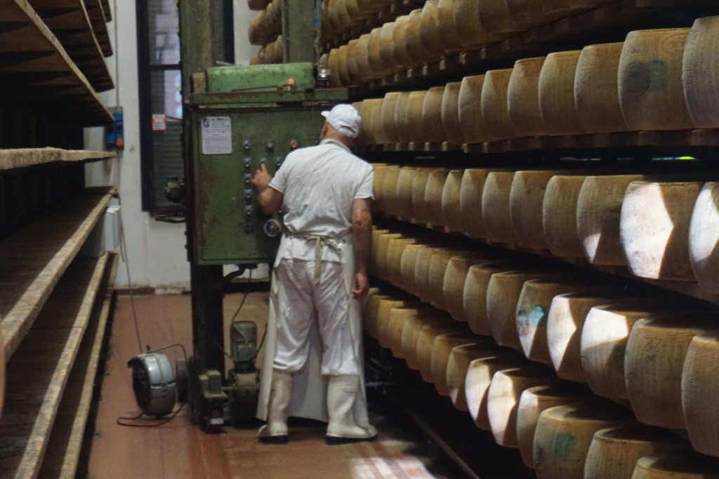 さて、10月のイタリアの旅、パルミジャーノ・レッジャーノチーズの工房で。